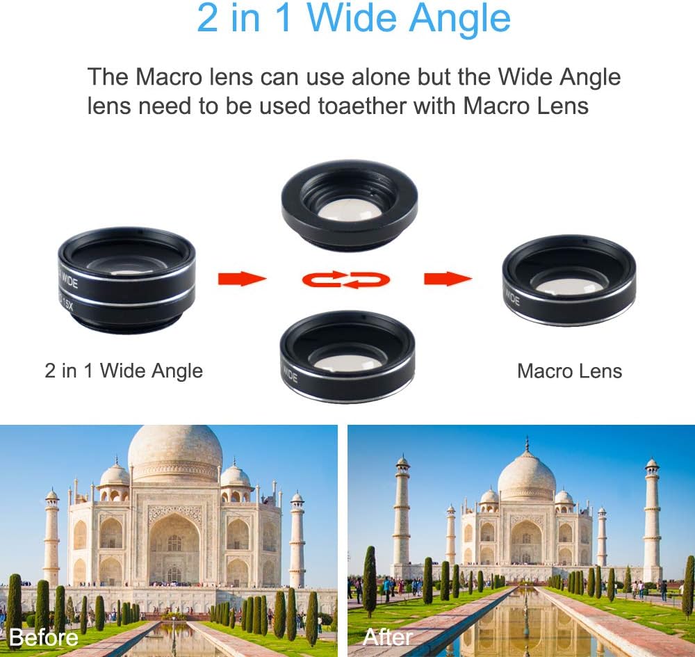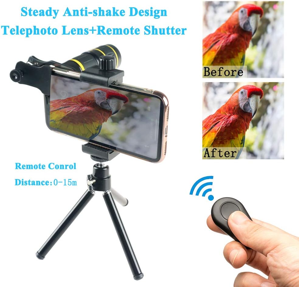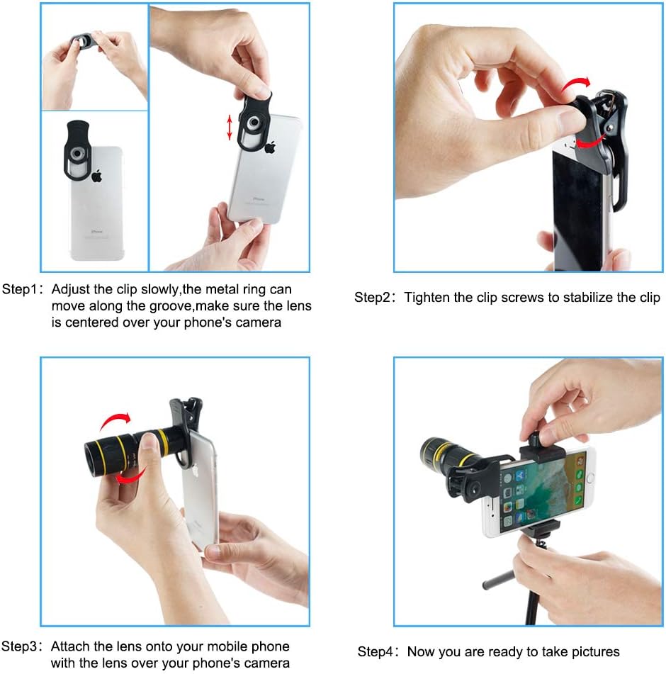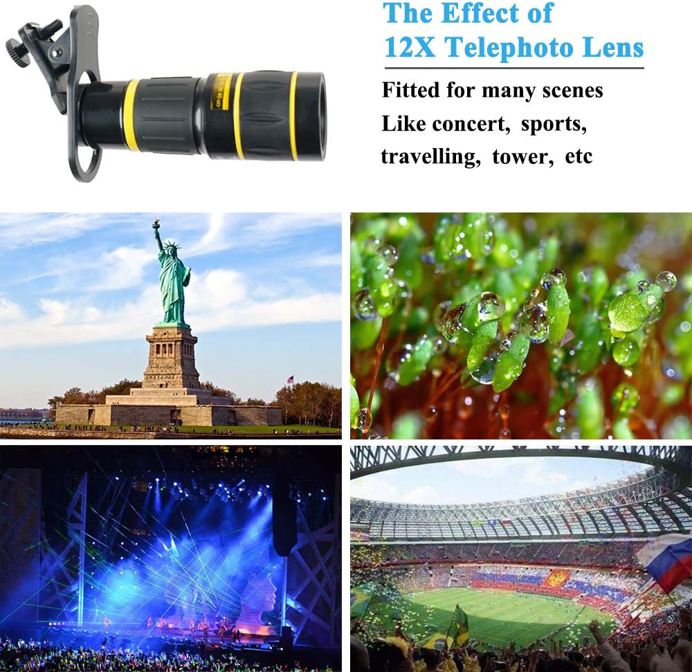 Step up your photography game with the SEVENKA Cell Phone Camera Lens Kit. Capture astonishing landscapes, detailed close-ups, fun fish-eye shots and awesome videos with its varied selection of high-quality lenses designed for iPhone 11 Pro Max X XS Max XR/8/7/6/6s Samsung Android Smartphone in black. Our 18X telephoto lens is designed to bring you 18 times closer to the object, which is ideal for capturing the long-distance objects without losing the quality and detail. Whether it is a concert, sports game or you are a nature lover, the high-end multi-resistant coating lens maximizes light transmission and minimizes ghosting, reflections, lens flare and other artifacts to deliver clear, crisp photos. The kit also includes a macro lens to magnify nearby subjects for breathtaking, super close-up photos, and a wide-angle lens to capture a broader scene. Having fun with our fisheye lens, providing you images with a round, fishbowl effect. One of the best features of our kit comes with a wireless remote shutter for easy selfie and group photographing. You can now take steady and crisp photos at a distance of up to 30 feet without touching your cell phone. The tripod with an extended reach (up to 2.5ft height) that comes with this kit aids in stabilizing your device for the perfect shot. It’s compact and lightweight, making it easy to carry around and secure your phone at the best angles. The SEVENKA Cell Phone Camera Lens Kit is user-friendly, all you need to do is clip the lens onto your phone. It’s compatible with both single and dual camera phones. Take your mobile photography to the next level with our SEVENKA 18X Telephoto Lens Kit. Package includes a premium storage case and cleaning cloth. Note that it’s compatible with a variety of iPhone, Samsung and Android smartphone models in black colour. Get the SEVENKA Cell Phone Camera Lens Kit today, and start capturing incredible images!