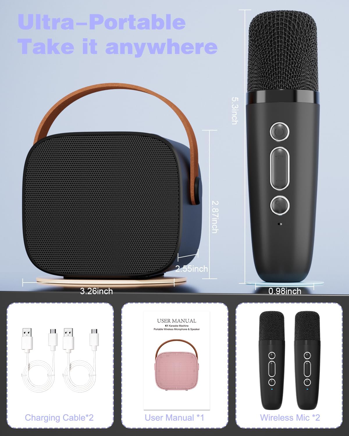 Mini Karaoke Machine with Kids Adults, Portable Bluetooth Speaker 2 Wireless Microphones, Gift for BoyToys 4, 5, 6, 7, 8, 10, 12+ Years Birthday Party (Black)