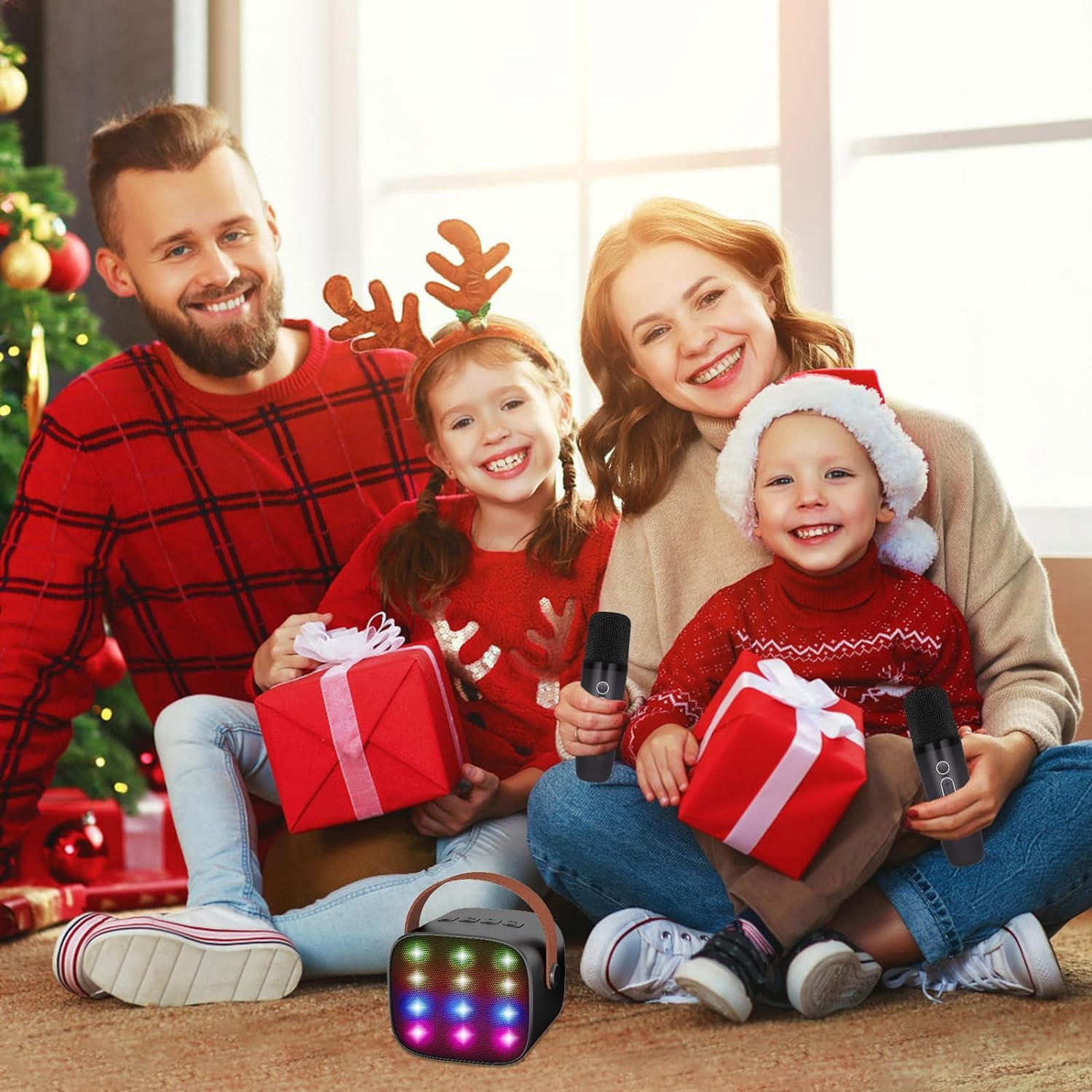 Elevate your music and singing experience with the ultimate Mini Karaoke Machine. Designed with both kids and adults in mind, it’s a perfect gift for birthdays and parties for boys aged between 4 and 12+ years. Suited for both solo performances and duets, this an all-in-one karaoke machine comes in a sleek black design that is portable and easy to use. It features a cutting-edge Bluetooth Speaker technology that connects seamlessly with your devices, providing crystal clear sound quality to turn any space into a concert hall. The Mini Karaoke Machine also comes with 2 easy-to-hold wireless microphones that are designed to limit feedback and interference, promising a smooth and uncompromised karaoke experience. These microphones are perfect for duets or sharing the fun with friends. Engage your family and friends in a fun-filled karaoke session anytime, anyplace with this portable karaoke machine. It’s not just a speaker, but a party in a box. Be the DJ of your party, control the volume, the bass, and the echo to get a mixing sound that’s just right. What’s more? It’s not just a karaoke machine. It can also be used as a PA system, guitar amplifier, radio, and portable music speaker. Carry this Mini Karaoke Machine to parties, trips, and enjoy the wonderful music world with your friends and family anytime and anywhere. Gift this fantastic Mini Karaoke Machine to your little ones and watch as they transform into superstar performers. Package includes: 1 Mini Karaoke Machine, 2 wireless microphones, power cord, user manual, and a whole lot of fun! Warning: Contains small parts, not for children under 3 years. Adult supervision required. Order yours now and bring the joy of karaoke into your home!
